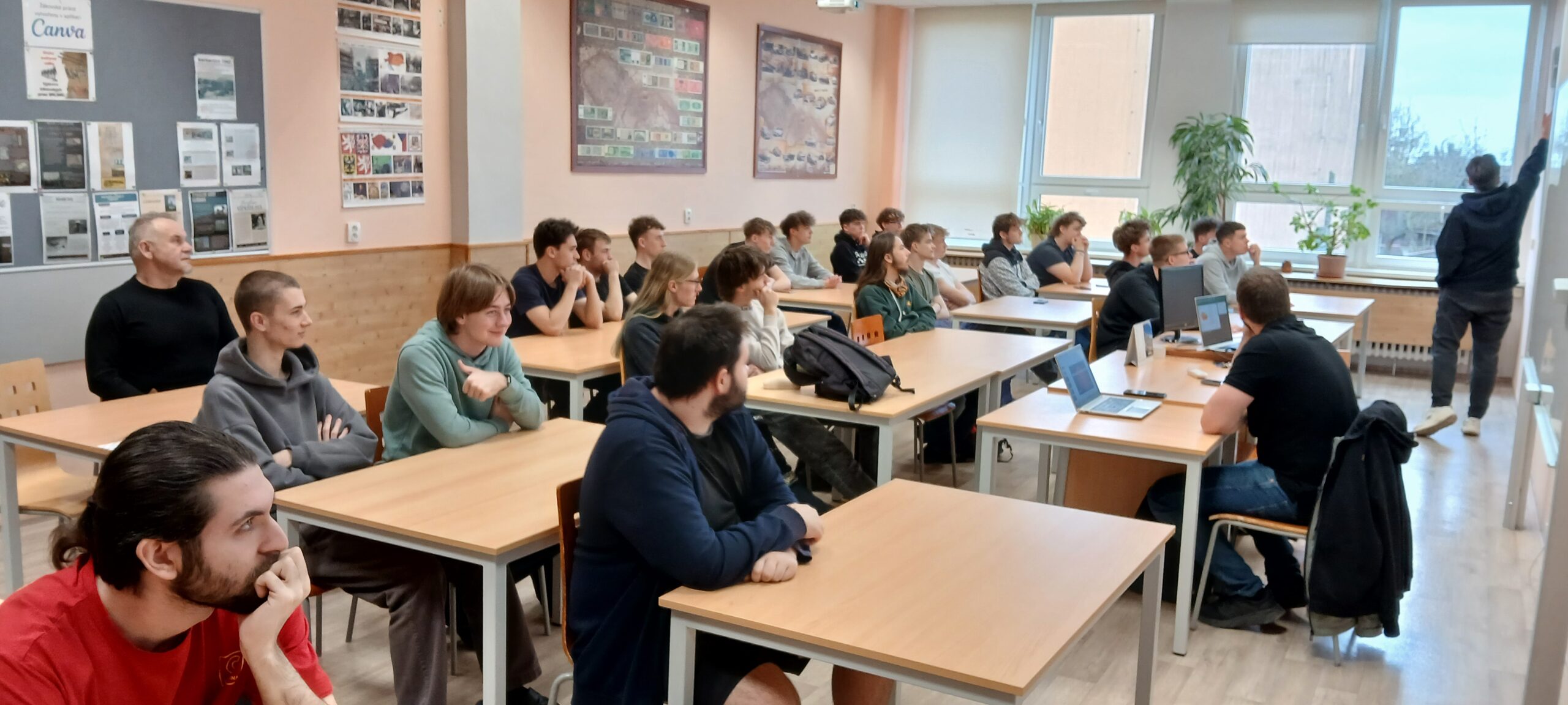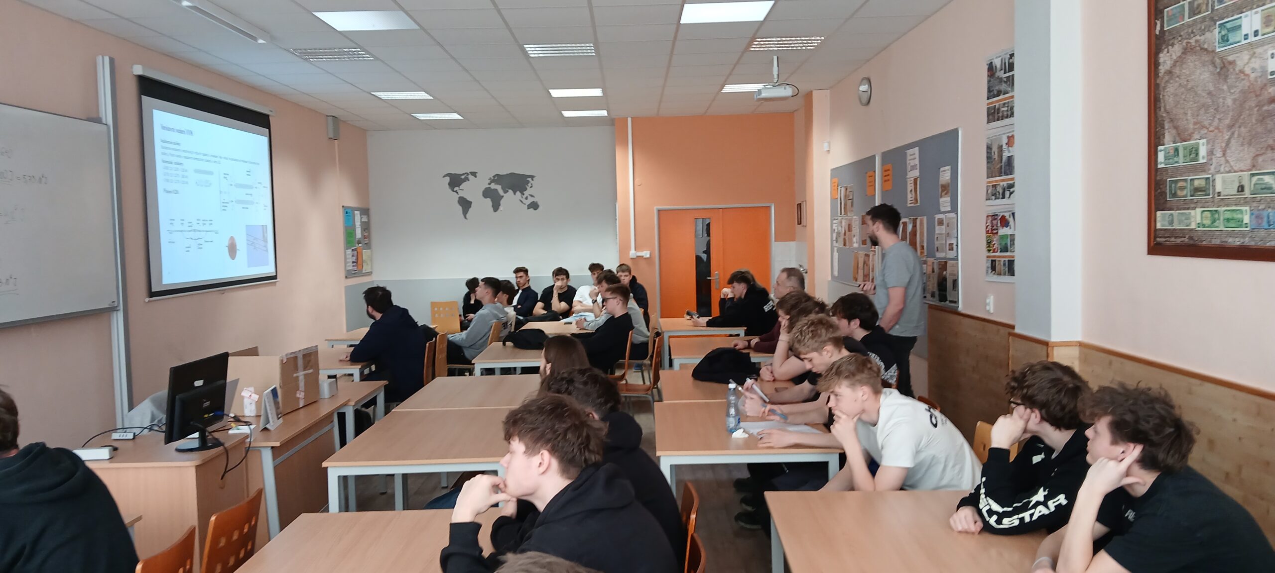 Pan Volek velice přehledně vysvětlil žákům SE3, ME3 jednotlivá témata. To vše doplnil ukázkou jednotlivých přístrojů.